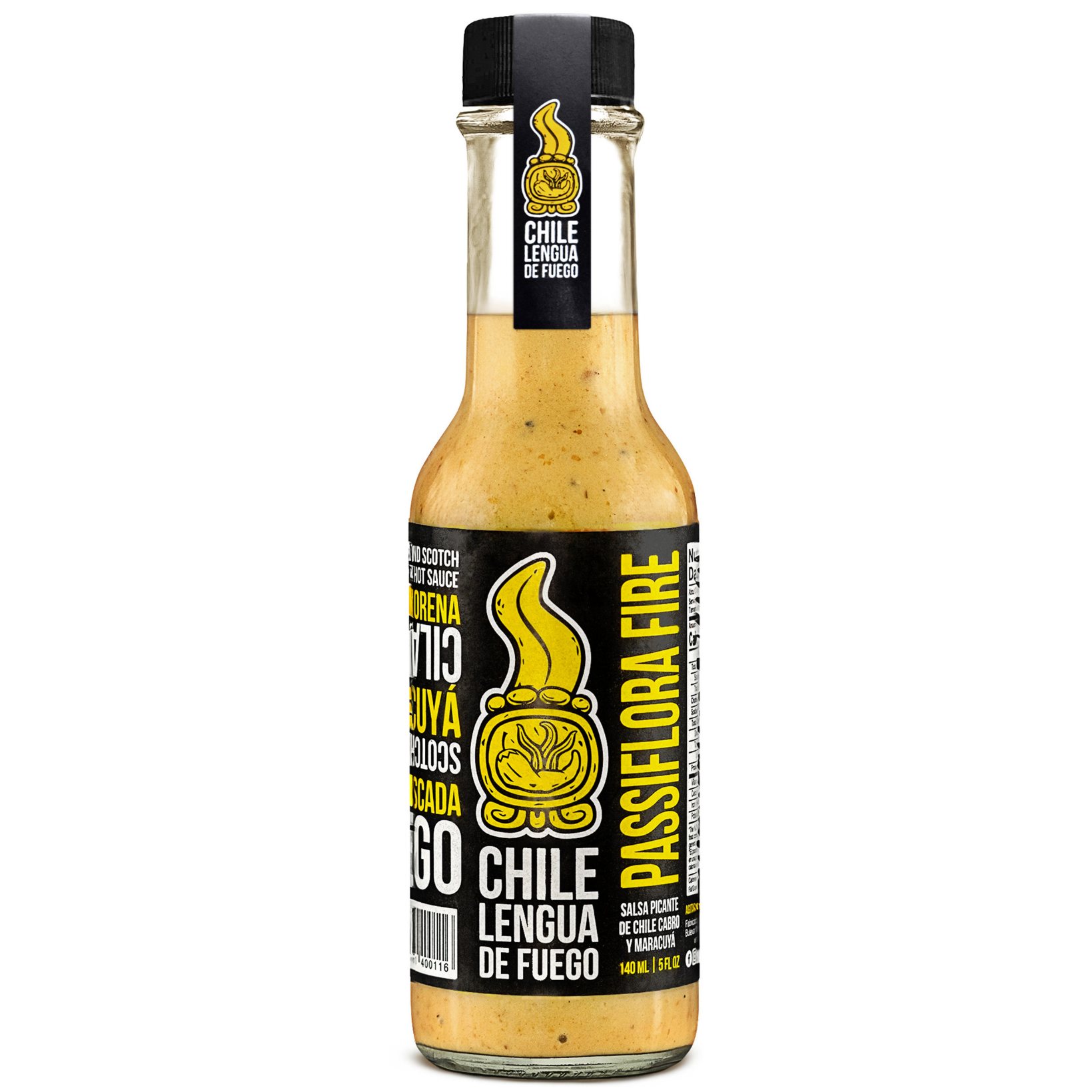 Passiflora Fire is a bold fusion of passion fruit concentrate, smoked Scotch Bonnet, green bell pepper, smoked garlic, and warm spices like nutmeg and clove. Balanced with brown sugar, olive oil, and a hint of coriander seed, it delivers bright tropical flavor with a rich, smoky finish and medium kick.